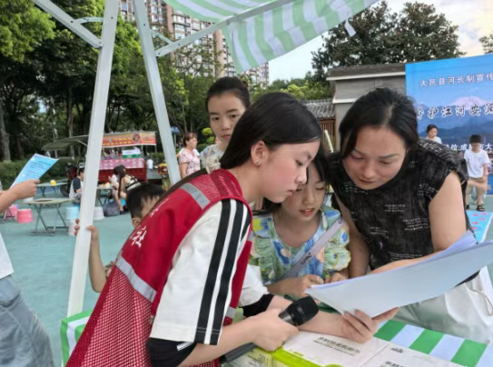 近日,大邑县河长制办公室在滨江广场举行了以“守护江河安澜·共享治水硕果”为主题的河长制“七进”进社区宣传活动。本次活动以“集中宣传+现场互动”的形式,通过发放宣传资料、设置展板、组织答题闯关等方式,让市民系统了解了河长制的制度背景、运行机制和近年来工作成效。本次活动内容丰富,宣传氛围浓厚,达到了以活动促传播、以互动促参与、以参与促共识的良好效果。
