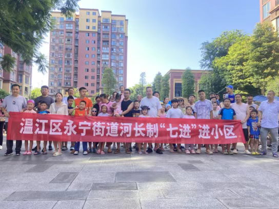 近日,温江区河长制办公室走进新庄社区新庄小区举办了以“夏季亲子泳池挑战赛”为主题的河长制“七进”进社区活动。本次挑战赛精心设计了“水上接力赛”“接水节水挑战”“喷射水枪”“护河小知识问答”等寓教于乐的亲子环节。活动旨在以此为契机,带动更多居民在日常生活中践行节水行动,共同守护良好水环境,助力形成全民参与水环境治理的良好格局。