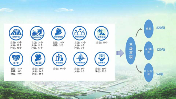 ——动态调整,科学合理。建立政务公开事项动态调整机制,根据上级对权责清单、公共服务清单的调整以及群众关切事项的变化,适时调整公开事项;围绕政务公开运行过程和群众反馈情况,及时研究,主动调整公开事项。经过5次动态调整,九个试点领域县、乡、三村级公开事项分别由最初的304项、78项、54项调整为490项、136项、110项,三级公开事项实现了由“比较准确”到“十分准确”的转变。