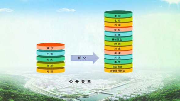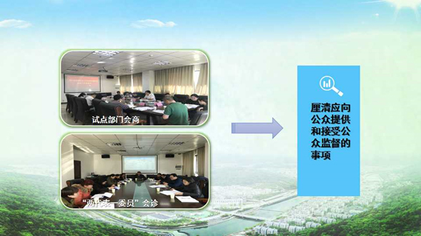 ——双管齐下,全面梳理。严格按照“五公开”要求,结合省政府办公厅下发的试点领域公开基本范围指引,依据权责清单、公共服务事项清单以及群众关切事项“三张清单”,分试点部门逐一梳理,将“三张清单”涉及的行政权力、公共服务事项和群众关切事项全部纳入公开目录,并根据事项的具体情况,再确定该事项由县、乡、村哪级公开,形成“三级目录”的征求意见稿。“三级目录”征求意见稿形成后,先后三次同步征求省市主管部门和乡镇、村的意见,对反馈的合理意见及时采纳,确保目录全面、准确、规范。与此同时,对业务工作按办事流程进行分解,在申请、审核、公示等环节一一对应确定公开节点,业务流程的内容在公开流程中全面呈现,实现了业务流程与公开流程的“精准对接”。