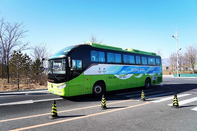 1月17日,氢燃料新能源车准备驶入北京2022年冬奥会和冬残奥会延庆停保中心场站。新华社记者 任超 摄