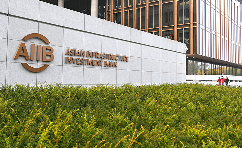 这是2021年10月25日拍摄的亚洲基础设施投资银行(亚投行)标志。 新华社记者 李贺 摄