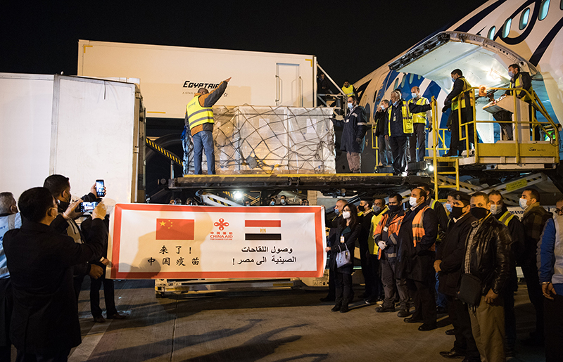 2021年2月23日,中国援助埃及的首批新冠疫苗抵达开罗国际机场。 新华社记者 邬惠我 摄