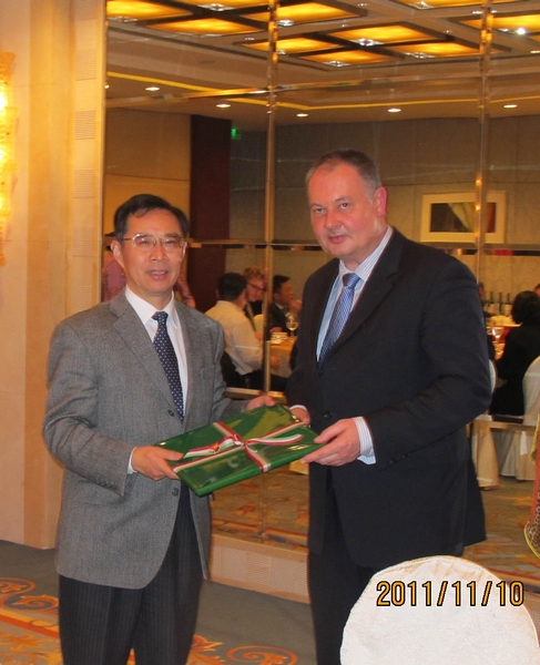 省外办副主任唐宏与德国北威州政府国际部负责人托马斯·戈里斯互赠礼品