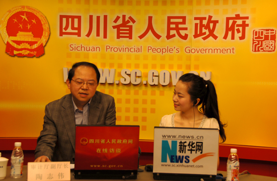 审计厅副厅长陶志伟同志接受四川省人民政府网站专访并与网友在线交流。图为陶志伟与主持人进行交流。