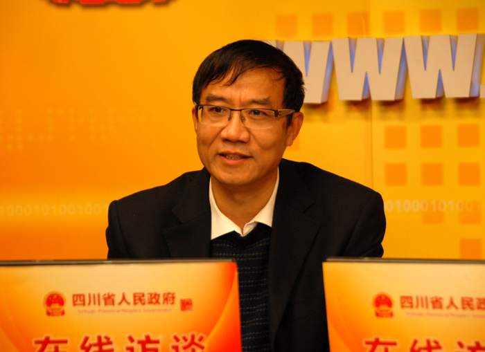 省安监局机关党委书记谭功元同志接受四川省人民政府网站专访并与网友在线交流。图为谭功元回答网友的问题。