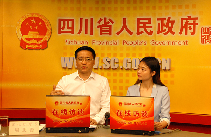 文化厅厅长周思源同志接受四川省人民政府网站专访并与网友在线交流。图为周思源与主持人进行交流。