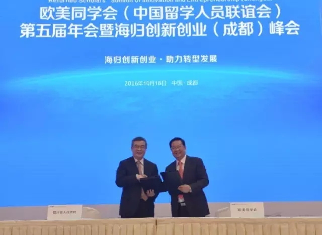 2016年10月18日上午,以“海归创新创业·助力转型发展”为主题的欧美同学会(中国留学人员联谊会)第五届年会暨海归创新创业(成都)峰会,在成都举行。