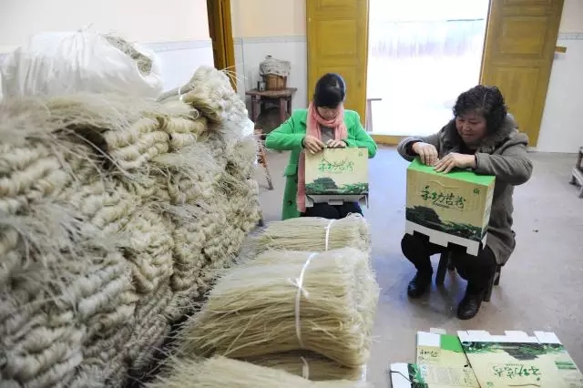 泸州市纳溪区,村民正在将粉条装箱准备外销。当地传授“非遗”技术,利用优质农产品资源,帮助农村群众就地创业,促进农民增收致富。