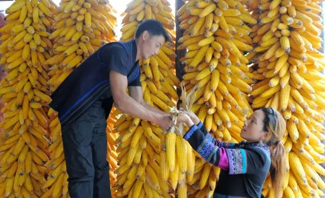 石棉县挖角彝族藏族乡勤劳村是少数民族村,为加快高山居住村民精准扶贫,将地处中高山村组搬到道路方便处家。毛连全从高山搬到公路边开始新生活。他爱人正在收获承包5亩地的包谷。