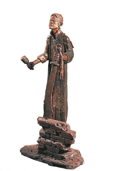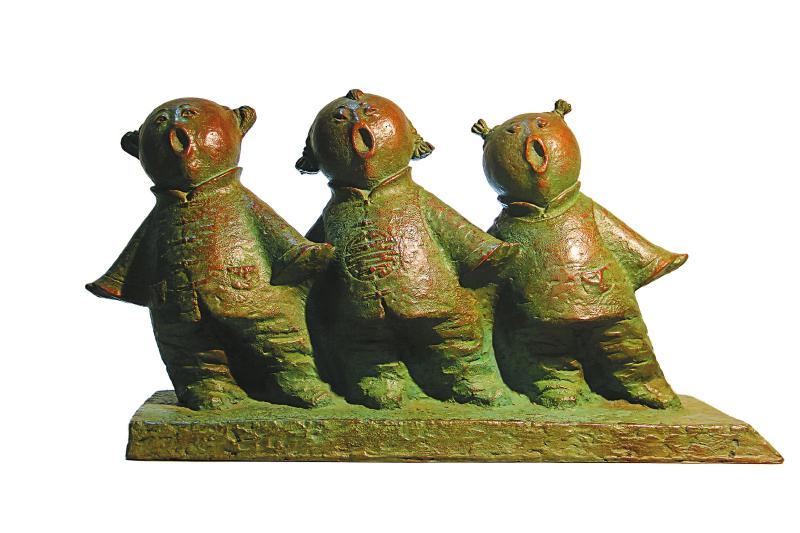 青铜,人们往往只能在博物馆看到其古老的身影。来自乐山的雕塑家王立富,就致力于用青铜器探索民间艺术在现代雕塑中的运用与创新。他此次带来的一组青铜作品,乍一看还以为是泥塑:抽烟杆的老爷爷,摇蒲扇的老奶奶……一个个具有四川生活意蕴的雕塑形象,传达对生活、对未来的期盼和向往。这种题材和材质上的反差,让人眼前一亮。