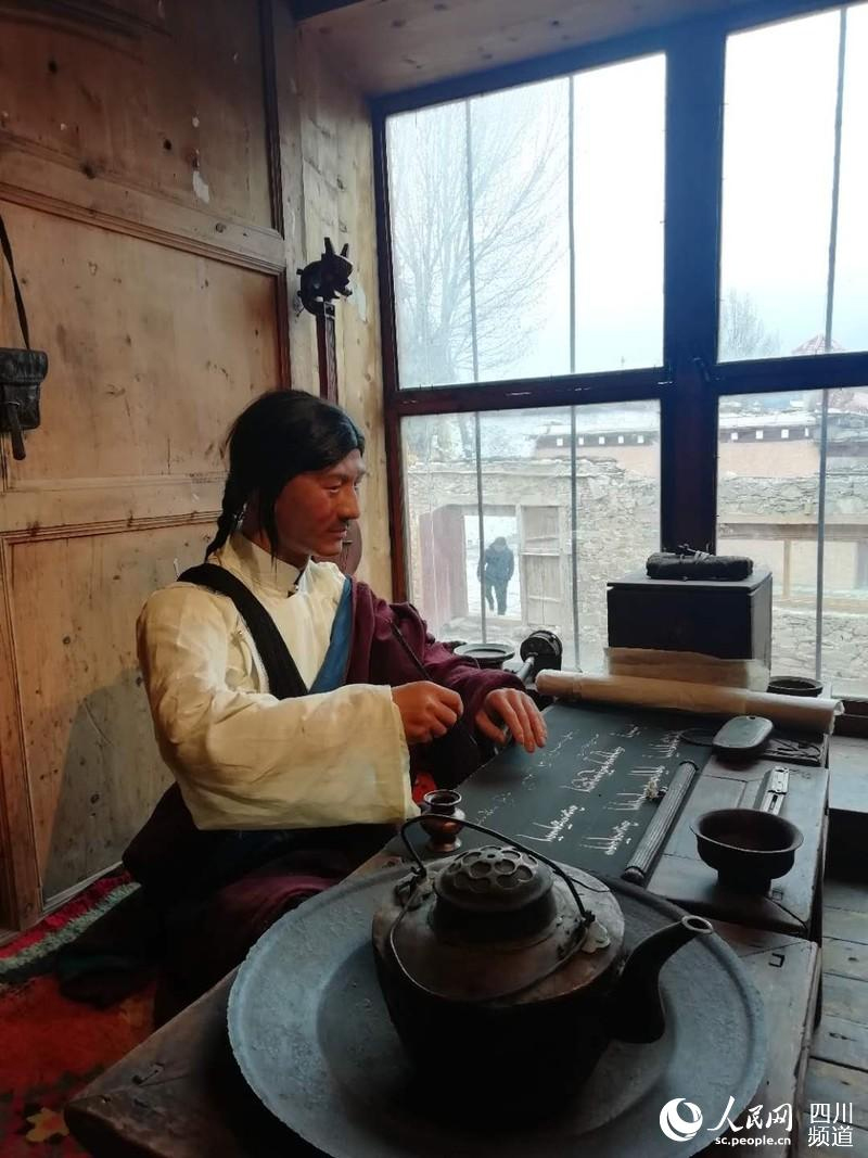 历时一个多月,挤奶、喝酥油茶、茶马古道、商人打秤、康巴商人袖内交易、客人喝酥油茶场景、弦子、主人房、藏式厨房、婚俗、仓库、羊毛编织、藏文书法、理塘传统建筑等蜡像雕塑,将康巴人过去的生活还原得栩栩如生。