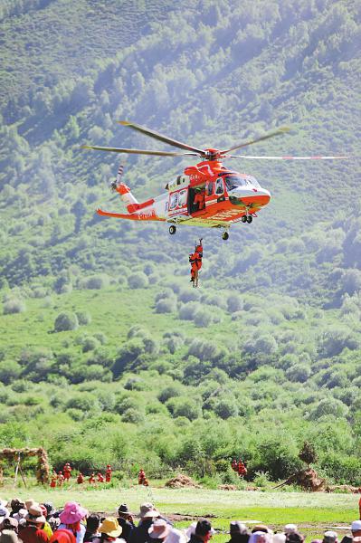 7月10日,阿坝州应急救援综合演练现场,直升机救援伤员。周琳摄(视觉四川)