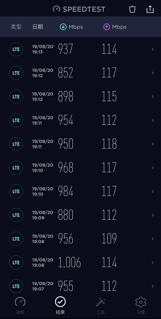 每秒下载量高达900多兆。图为5G网络开通后实时测试数据