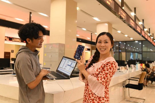 办事群众陈女士成为了第一位尝鲜者。只见她手指轻触测试的“开始”按钮,5G网络的实时数据便一一呈现。随后她又体验了一把上传证照到云端,刚点“上传”便已完成让她惊叹不已。“确实是快!过去总听说极速审批,今天总算是见识了!”陈女士评价说。