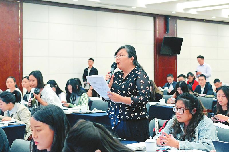 9月18日,记者现场提问。 (记者 郝飞 摄)