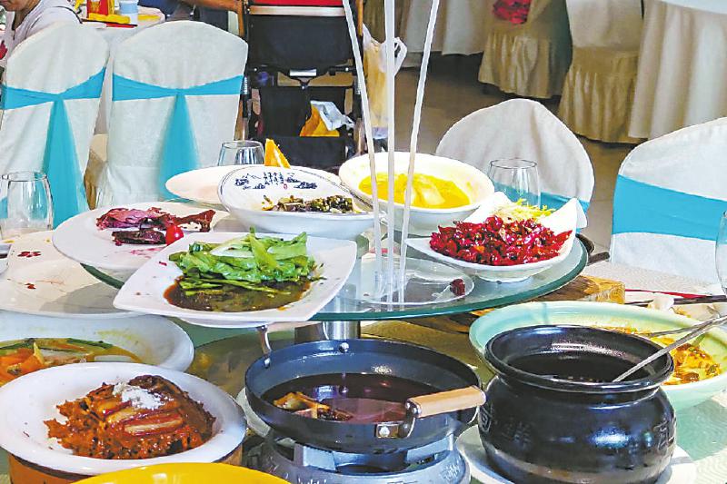 日前,在成都市锦沙路附近的一家酒楼里,生日宴后的餐桌上剩有不少食物。记者杨树摄