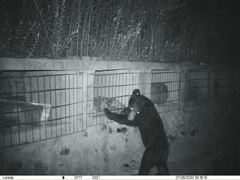 红外相机拍到黑熊偷吃村里养蜂场的蜂蜜。