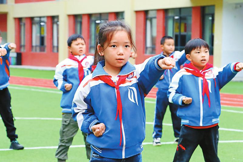 “双减”大背景下,通江县多措并举为孩子培养运动好习惯。11月3日,在通江县实验小学,田径社团的孩子们在老师的指导下练习田径、武术等运动项目。 (程聪 摄)