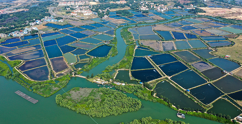 这是广西钦州市钦南区沙埠镇船埠环村的冬日虾塘景色(11月25日摄,无人机照片)。 新华社记者 张爱林 摄