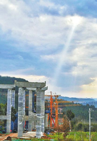 不仅建设不停工,控制性工程还在加大投入。位于王通段尾端的二郎庙特大桥长1500多米,部分桥墩位于深沟峡谷,最高处有102米,桥墩按节段来施工,每一节段只有6米。4标项目总工伍龙告诉记者,目前全桥16个桥墩同时施工,还将增加90%的工人和设备,以多投入来保建设进度。