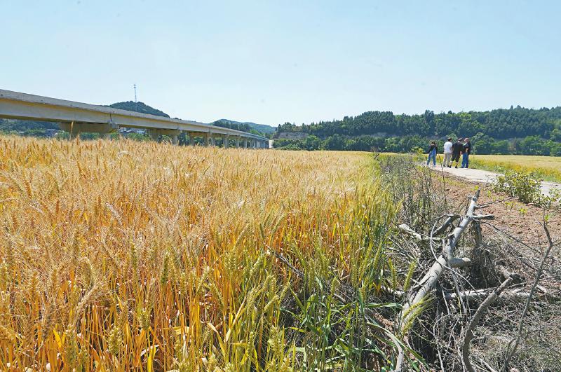 绵阳盐亭县玉龙镇周家村,麦田已黄。“过半个月就能开镰。”4月29日中午,搓开手里的麦穗,盐亭县穗丰农资有限责任公司执行董事谢俊逸瞧着颗粒的饱满度,确定又是一个丰收年。“雨季快来了,得组织人把这个东西清一下。”谢俊逸从水渠里捡起一根干枯树枝。