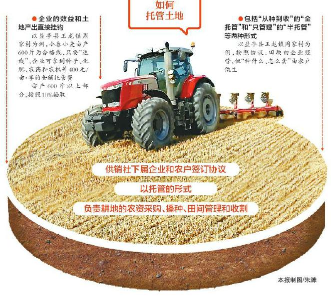 按照协议,田块由穗丰农资经营,但“种什么、怎么卖”,全由农户做主。不管是“从种到收”的“全托管”,还是“只管理”的“半托管”,企业的效益都和土地产出直接挂钩。