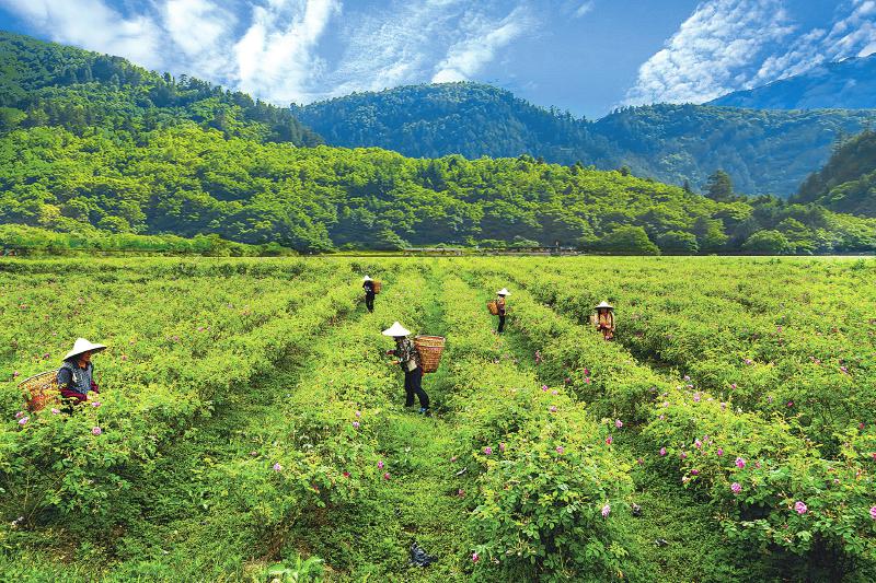 在九龙镇棚花村,具有川西特色的农家小院掩映在青山绿水中,游人穿行其间怡然自得;视线转向麓棠镇,以万亩玫瑰为基础,集种植、精深加工、研发等于一体的全产业链已经形成;孝德镇年画村“乡遇画里”文创社区着力发展年画产业,各类年画产业经营组织已达40余家,从业人员400余人,年画作坊20余家……