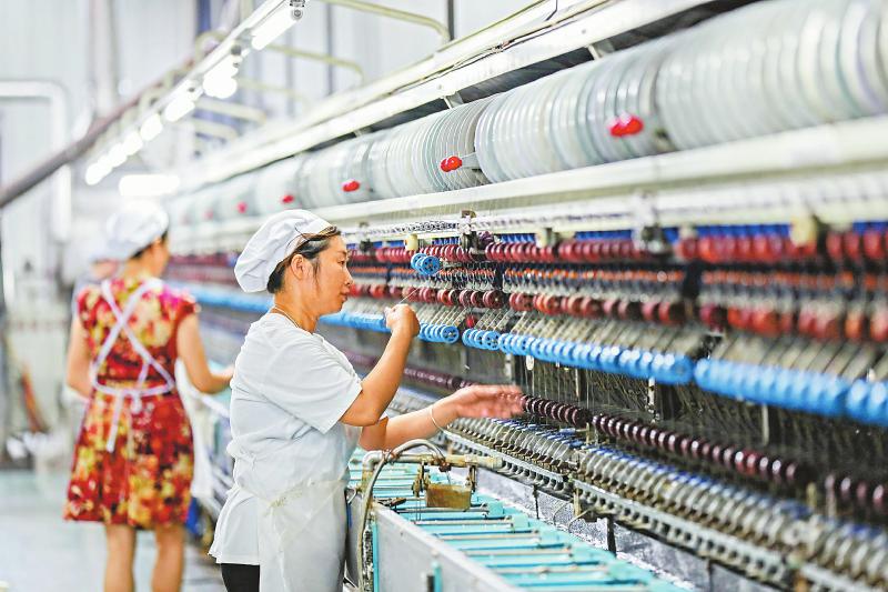 7月9日,在宜宾市高县新丝路茧丝绸有限公司,工人正生产桑蚕丝。时下,正是蚕茧收获的季节,该公司生产的桑蚕丝不仅热销全国各地,还出口到美国、意大利、法国等国。高县素有“中国蚕桑之乡”的美誉,蚕桑是当地特色优势支柱产业之一。庄歌尔 摄(视觉四川)