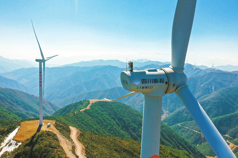 2022年,四川第一批正式核准的风电项目共计14个,总装机容量155.87万千瓦,总投资107.14亿元。此次核准的项目全部位于凉山州境内,项目建成后平均年发电量36.72亿千瓦时,将进一步提升我省清洁能源开发利用水平。图为2022年3月9日,四川能投会东新能源开发有限公司检修人员在凉山州会东县拉马风电场90米高的风机上巡检。