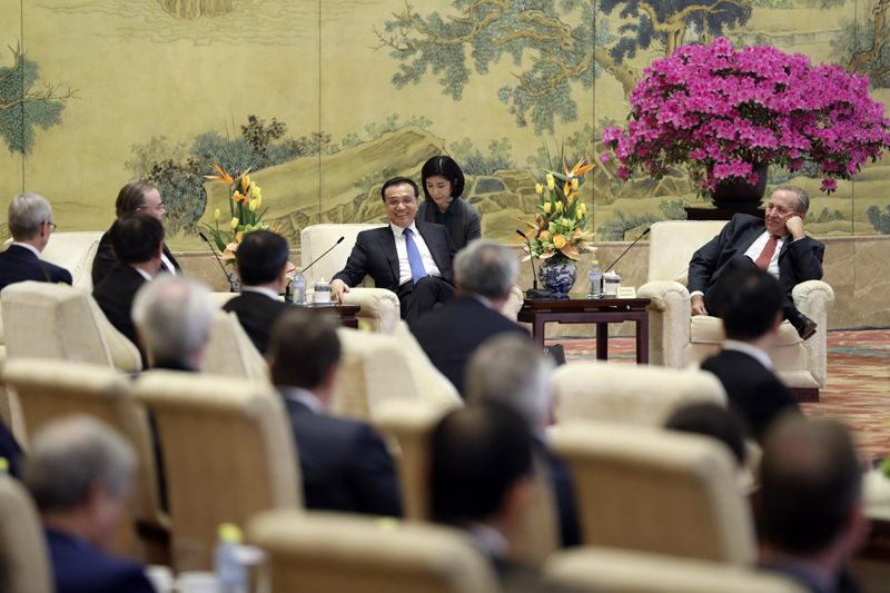 汇丰控股行政总裁欧智华,哈佛大学前校长、美国前财长萨默斯,苹果公司首席执行官库克,《金融时报》首席经济评论员沃尔夫,诺贝尔经济学奖得主、哥伦比亚大学教授费尔普斯等分别就自由贸易、市场开放、互联网产业、创新发展等提问。李克强一一作答。