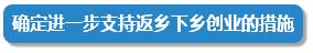 1.加大政策支持。返乡下乡创业人员可在创业地享受与当地劳动者同等的创业扶持政策。将首次创业、正常经营1年以上的返乡创业农民工纳入一次性创业补贴支持范围。对回迁或购置生产设备的返乡下乡创业企业,有条件的地方可给予一定补贴。
