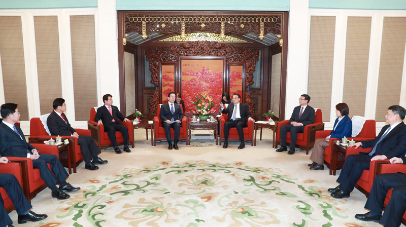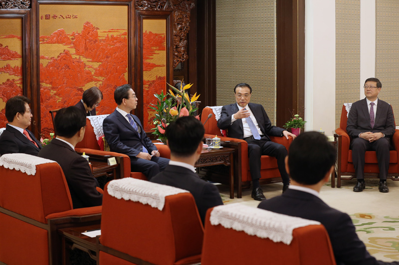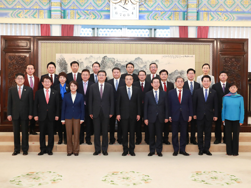 国务院总理李克强11月27日下午在中南海紫光阁会见出席第二届中韩省长知事会议的双方代表。
