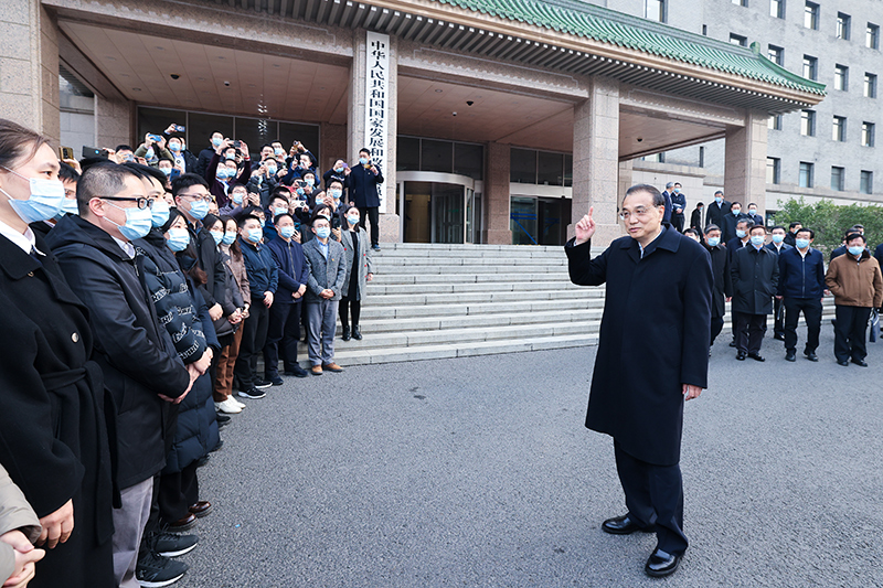 李克强来到发展改革委,听取近年来重点工作汇报。他说,发展改革委担负发展与改革职责,发展是第一要务,改革是根本动力,要继续做发展的实干家、改革的攻坚者。去年为应对疫情等超预期因素冲击,我们果断推出稳经济一揽子政策和接续措施,发展改革系统积极提对策、抓落实,为稳住经济大盘发挥了重要作用;牵头建立协调机制,用改革的办法推进重大项目建设、设备更新改造加快形成实物工作量,既推动扩投资增消费稳就业,促进了去年底和今年初经济增长,又有利于补短板调结构增后劲。协调机制在这项工作中发挥了关键作用。