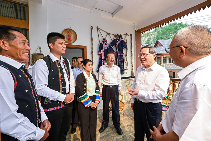 在云南西双版纳,李强来到勐腊县勐腊镇补蚌村,察看沃柑、小玉米等农产品展示,并与脱贫户、村干部和村民代表深入交流。他强调,要因地制宜发展特色品牌农业和乡村旅游,更好带动乡村振兴和农民增收。李强考察了中老磨憨-磨丁经济合作区,详细了解规划建设和产业发展情况,勉励他们发挥综合优势,提高空间利用效率,促进产业集聚,在深化沿边开放中实现合作共赢。