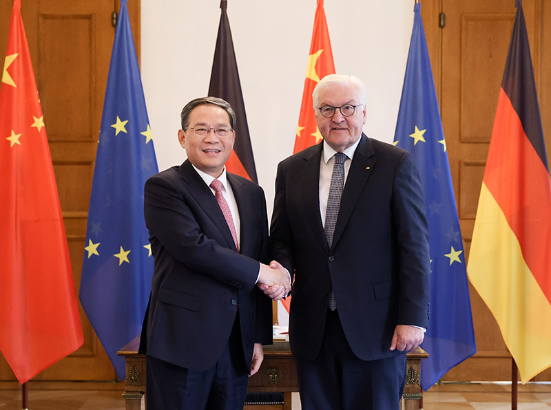 当地时间6月19日上午,国务院总理李强在柏林总统府会见德国总统施泰因迈尔。新华社记者 丁海涛 摄