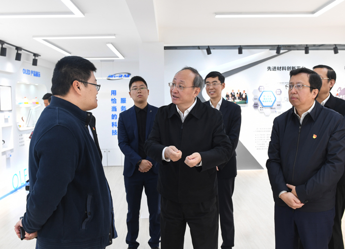 11月9日,省委副书记、省长尹力在阿格瑞OLED新材料建设项目现场,调研电子信息产业发展情况。