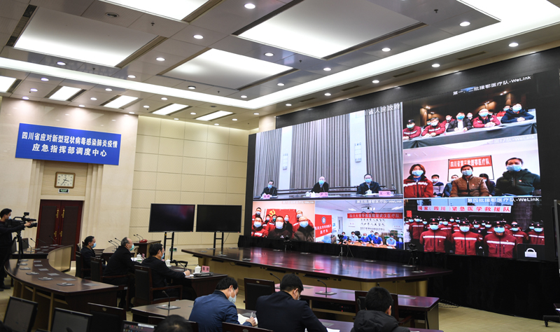 2月12日,省委副书记、省长、省应对疫情应急指挥部指挥长尹力视频连线我省援助湖北医疗队代表,代表省委省政府感谢全体医疗队员关键时刻挺身而出,称赞援鄂队员是四川医务人员的优秀代表、是新时代四川的骄傲,希望全体队员继续保持昂扬的斗志,用优良的专业素质打赢战“疫”,期待大家平安胜利归来。