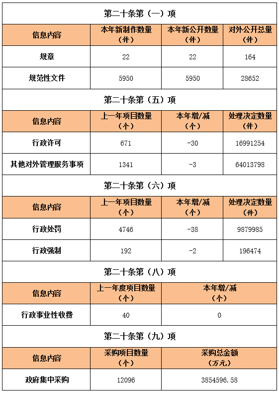 1.信息发布扎实推进。2019年,各地各部门严格按照“谁制作、谁公开”原则以及信息“三审”发布要求,累计公开政府信息842.13万条(不含政务服务、企业信用、集体土地征收、投资审批、公共资源交易等专业平台发布的数据)。