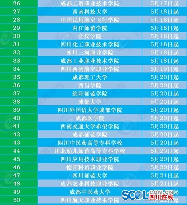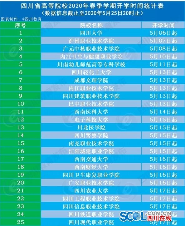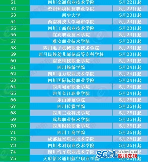 5月25日,记者从教育厅获悉,截至目前,四川已发布开学时间的高校超过100所。