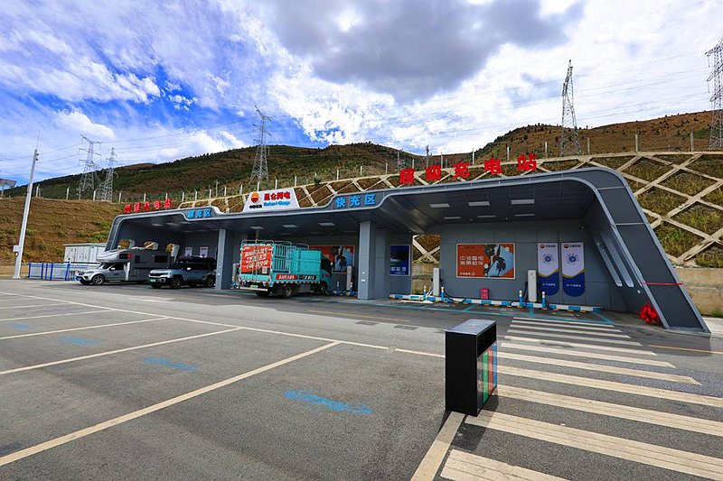 G318线上普通服务区内的充电桩。四川省交通运输厅公路局供图