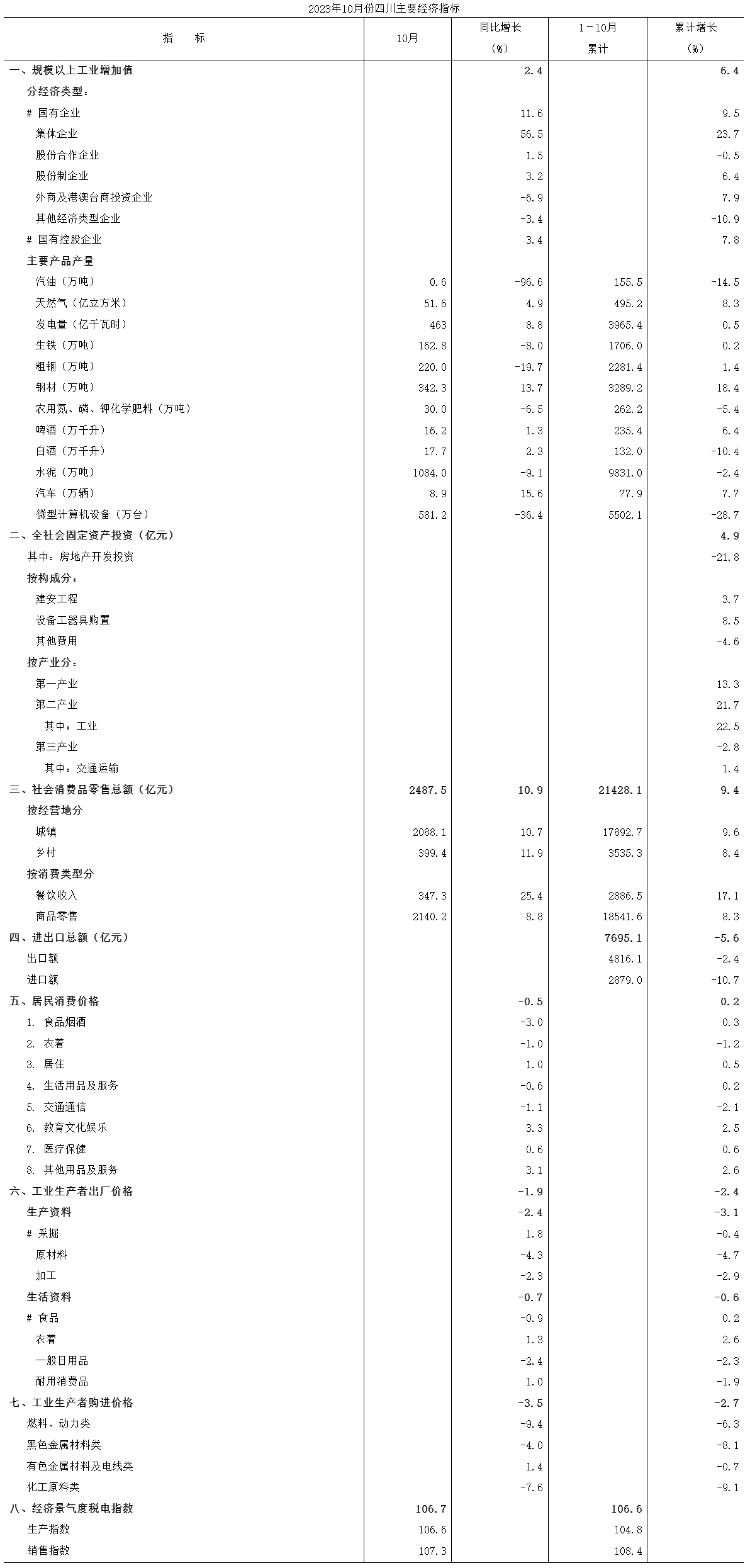 2.物价情况由国家统计局四川调查总队提供,进出口情况由四川省商务厅提供,税电数据由国家税务总局四川省税务局提供。