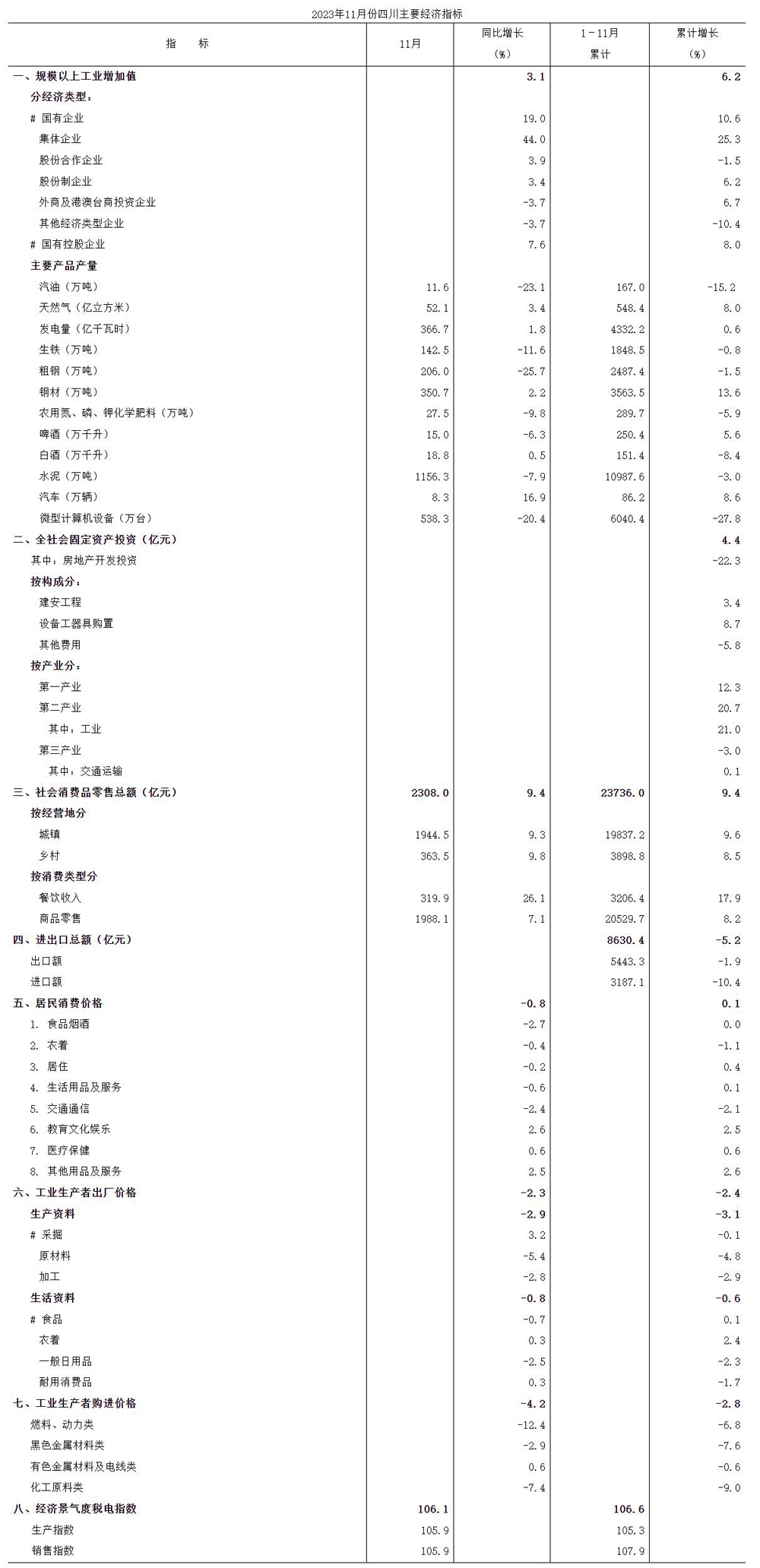 2.物价情况由国家统计局四川调查总队提供,进出口情况由四川省商务厅提供,税电数据由国家税务总局四川省税务局提供。