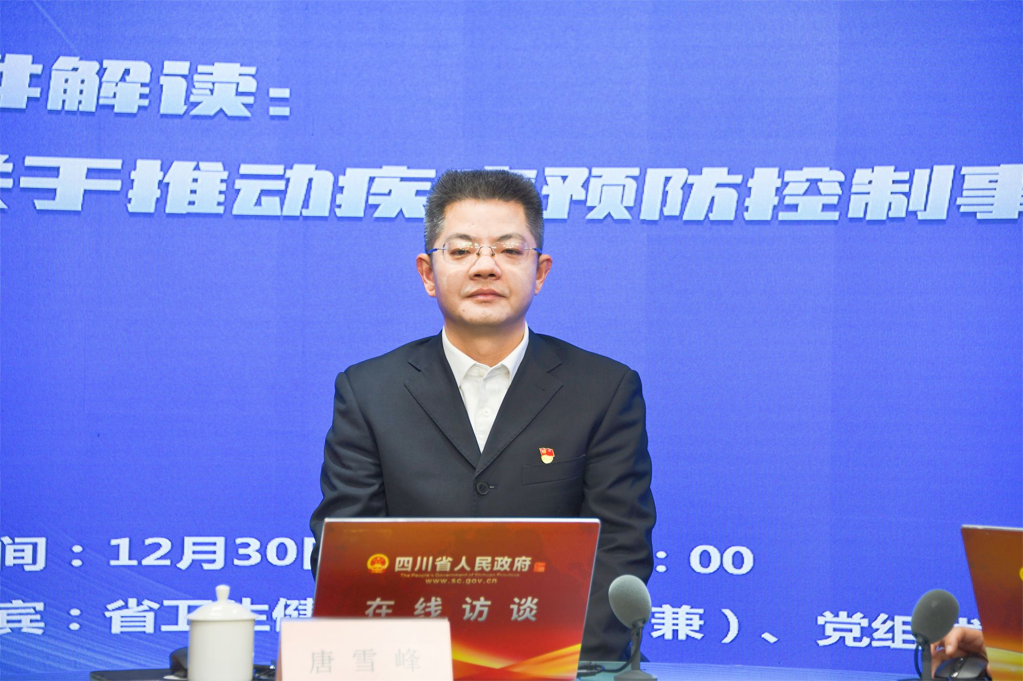 为贯彻落实《国务院办公厅关于推动疾病预防控制事业高质量发展的指导意见》,加快推动全省疾病预防控制事业高质量发展,推进健康四川建设,经省政府同意,省政府办公厅近期印发了《关于推动疾病预防控制事业高质量发展的实施意见》。12月30日,四川省卫生健康委副主任(兼)、党组成员,四川省疾控局党组书记、局长唐雪峰走进省政府网站在线访谈直播间,就《实施意见》内容进行解读,并与广大网友在线交流。
