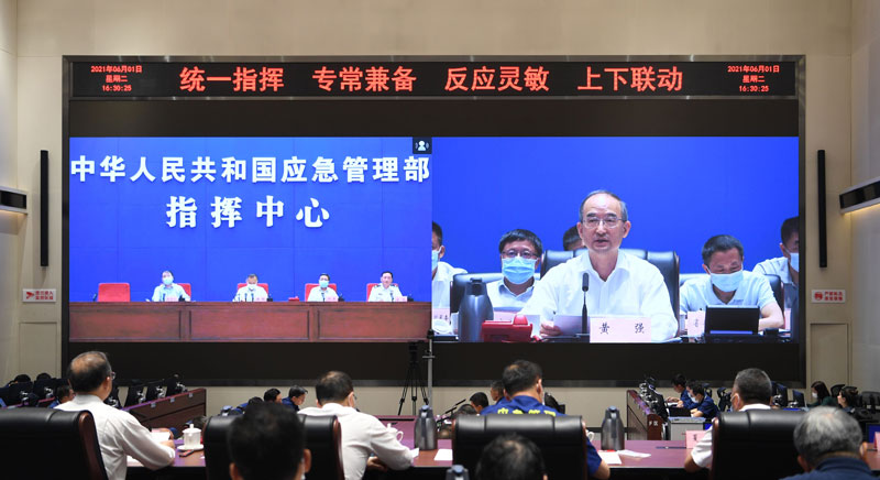 6月1日,“应急使命·2021”抗震救灾演习总结评估视频会举行。会议在应急管理部和应急厅设主会场。国务院抗震救灾指挥部副指挥长、应急管理部部长黄明,省委副书记、省长黄强出席会议并讲话。