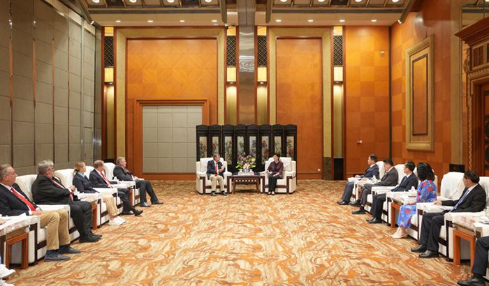 国际世运协副主席迪伦和司库海恩德,省委常委、成都市委书记曹立军,副省长杨兴平,省政府党组成员胡元坤,省直有关部门负责人等参加会见。(记者 李淼 摄影 田为)