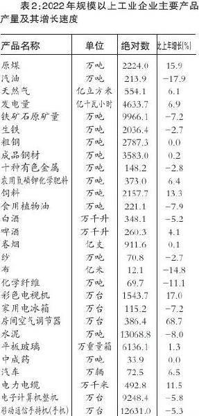 在规模以上工业中,分轻重工业看,轻工业增加值比上年下降0.8%,重工业增加值增长6.1%,轻重工业增加值之比为32∶68。分经济类型看,国有企业增长4.5%,股份制企业增长4.4%,外商及港澳台商投资企业增长2.3%。