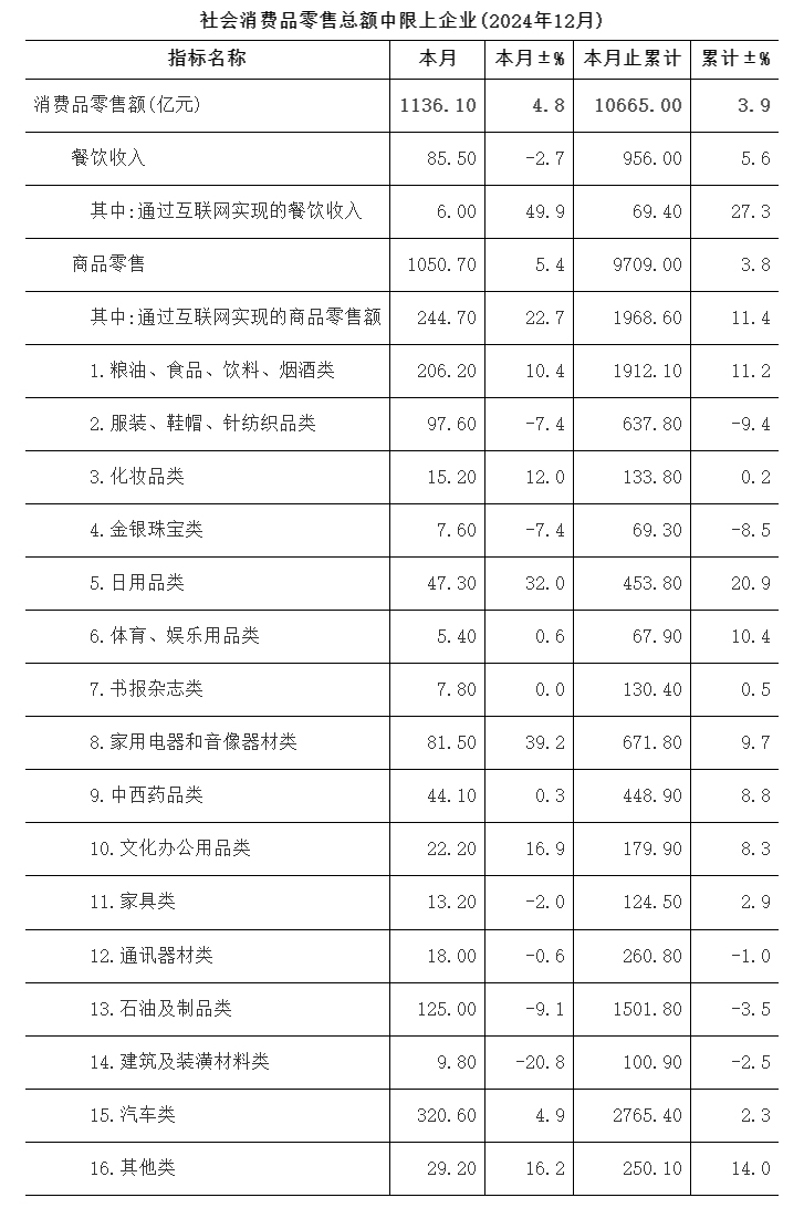 社会消费品零售总额中限上企业(2024年12月)