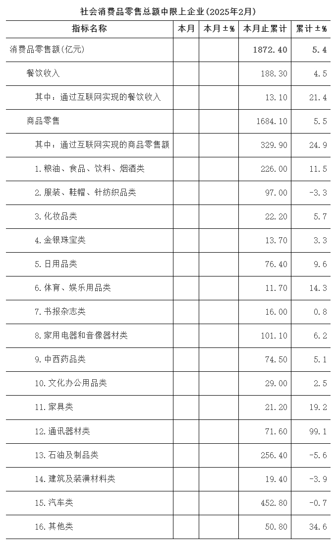 社会消费品零售总额中限上企业(2025年2月)