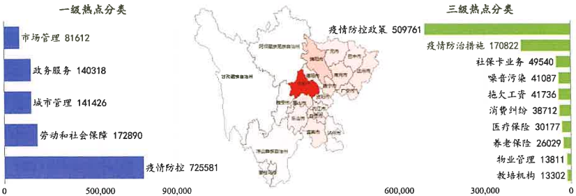 从群众诉求具体情况来看,疫情防控政策、医患纠纷、高速公路拥堵等诉求较多。受疫情影响,群众对西藏、新疆等地返川疫情防控政策,核酸检测报告时效性,健康码异常申诉等诉求量增加;因医疗费用过高、诊疗方案存在争议、就医通道拥堵、挂号难引起的医患纠纷类诉求较多;国庆长假车流量增加,群众对高速公路入口匝道、收费站、施工路段等高速公路拥堵诉求量环比上升。